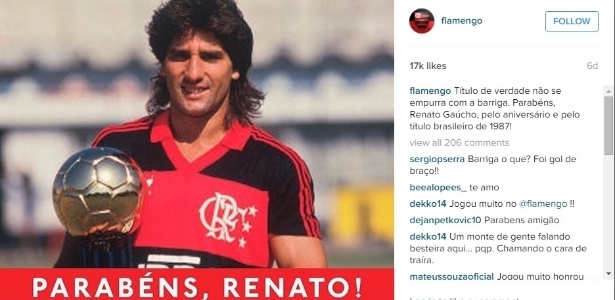 O aniversário de Renato Gaúcho foi usado para provocar Fluminense e Sport nas redes sociais Reprodução Instagram